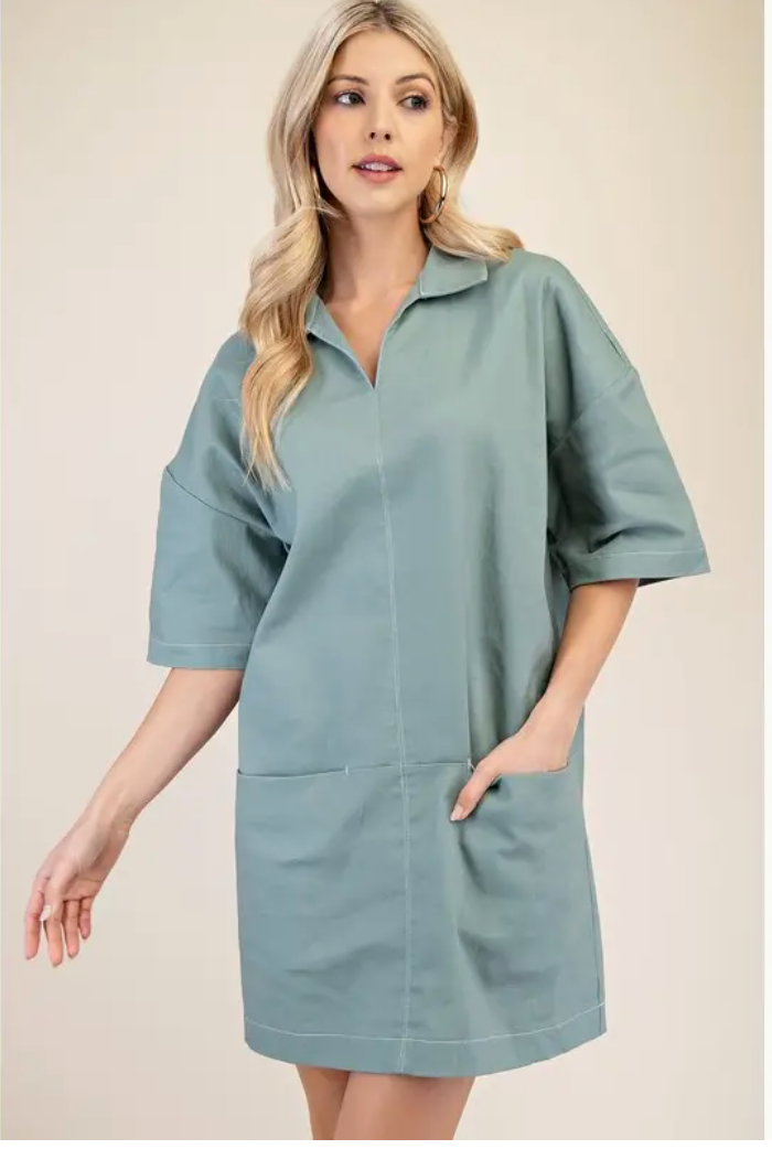 Collar Neck Shift Pocket Mini Dress Model Height: 5'7" Wearing Size Small